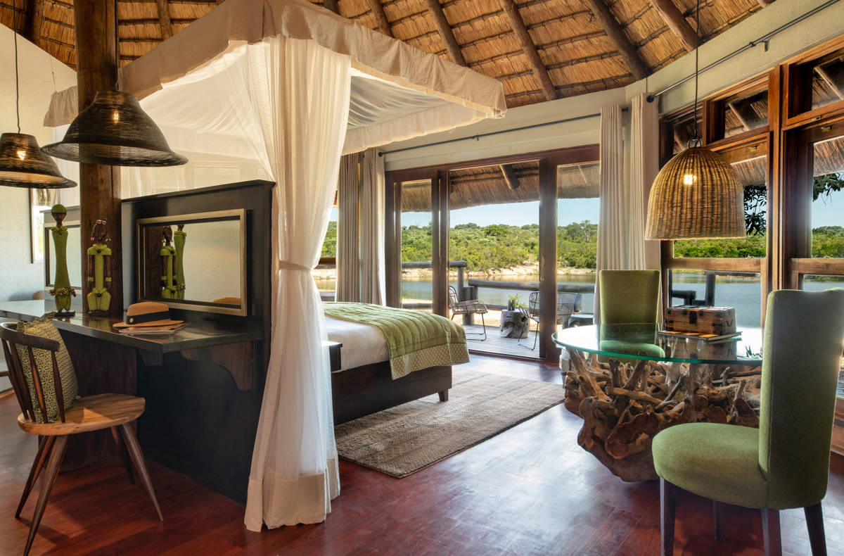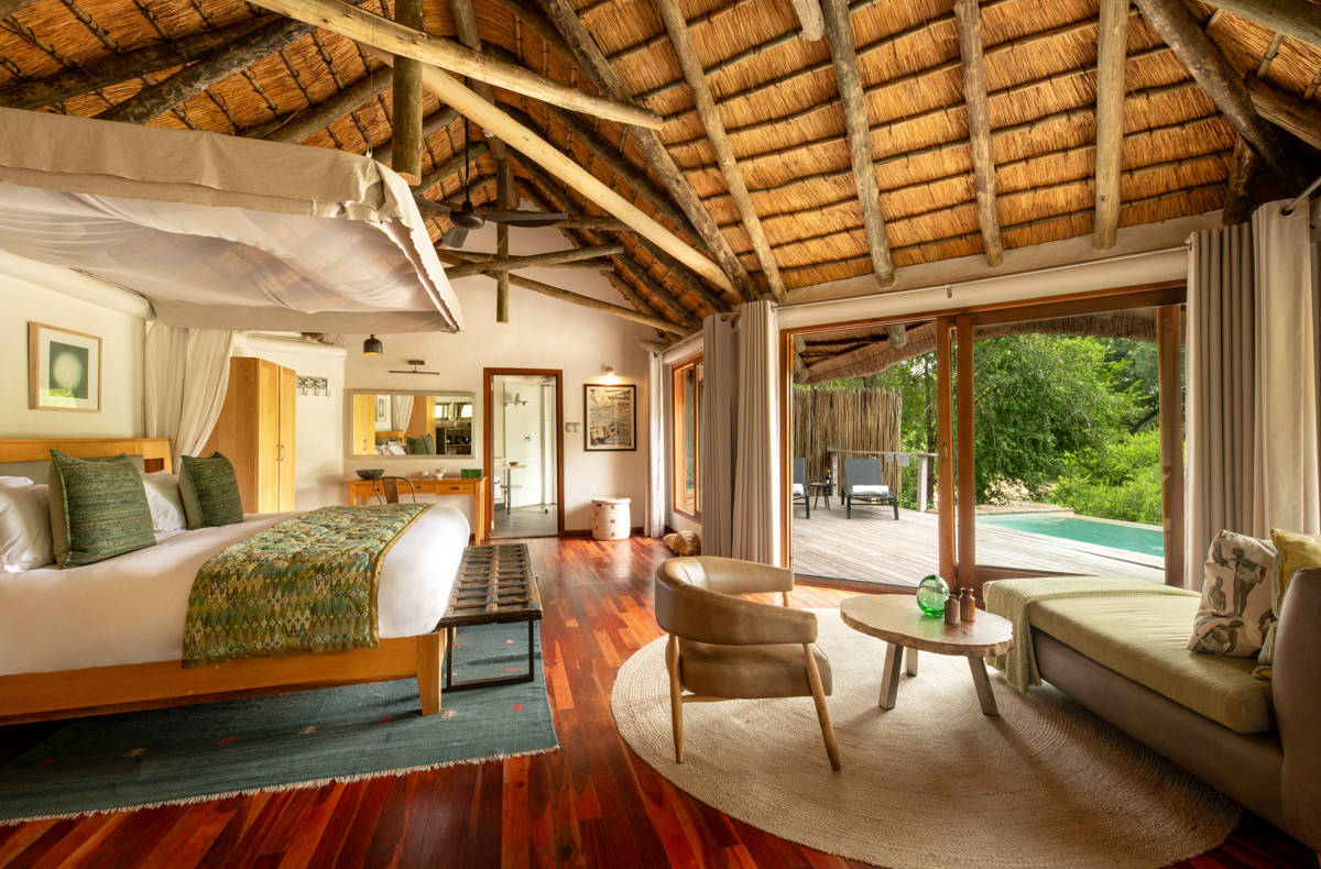 This spacious and unique suite has a private deck with views over Xikwenga Dam, where hippos and elephants come to bathe. A secluded haven for two, ideal for a honeymoon safari.