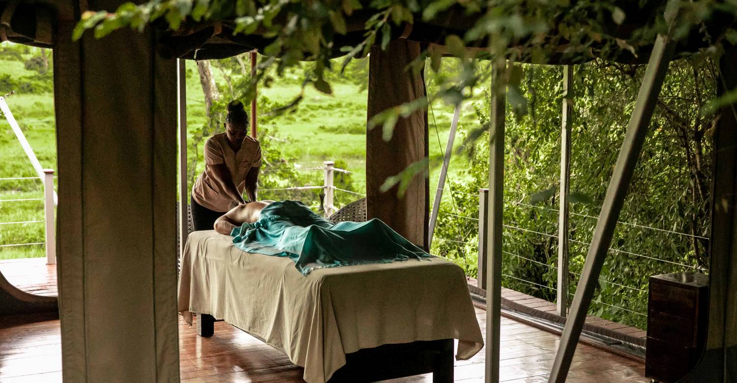 On the edge of Kenya’s Maasai Mara, Mahali Mzuri offers a deeply immersive sense of calm. The intimate treatment room overlooks the bush at the foot of the valley, allowing guests to enjoy massages using natural oils inspired by the landscape, while wildlife moves quietly in the distance. The vastness of the surroundings encourages reflection, making even moments of rest feel expansive.
