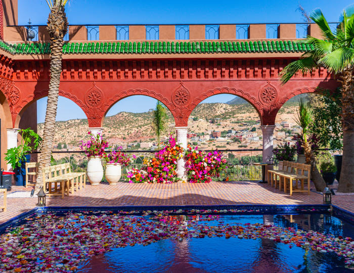 Nestled in the foothills of the High Atlas Mountains in Morocco, Kasbah Tamadot is the epitome of magical romance. Imagine exchanging vows under the twinkling stars, surrounded by breathtaking mountain views. It’s like stepping into a fairytale.