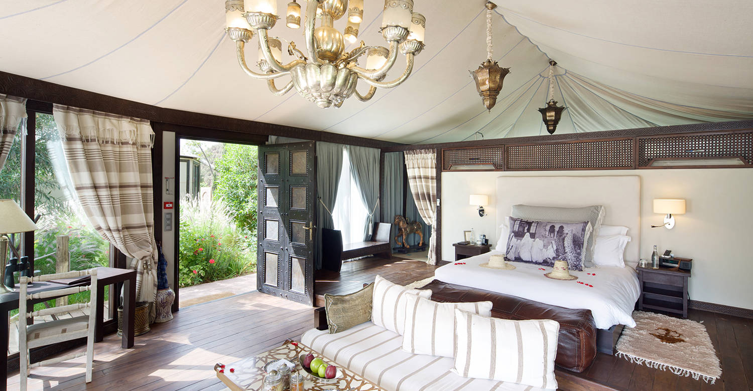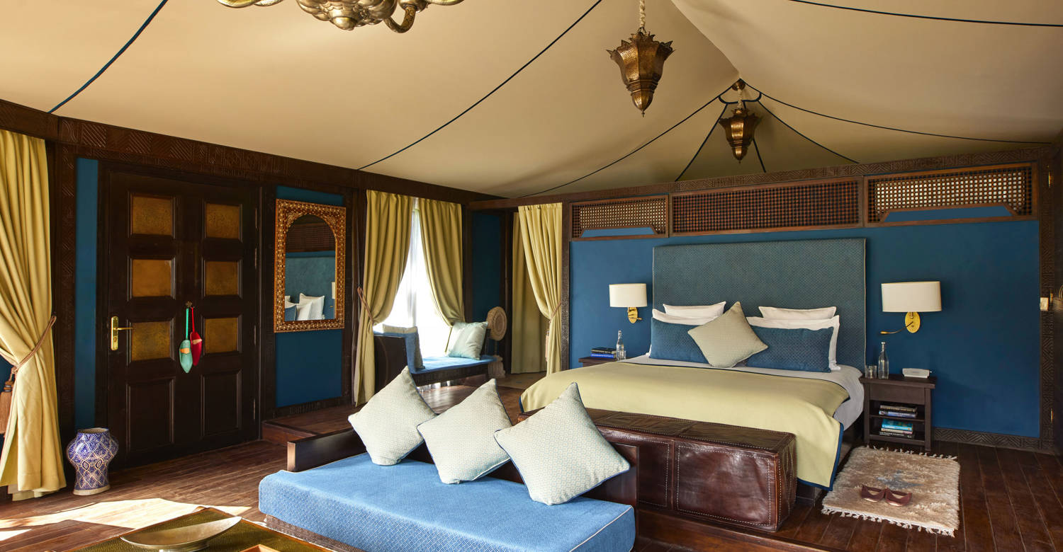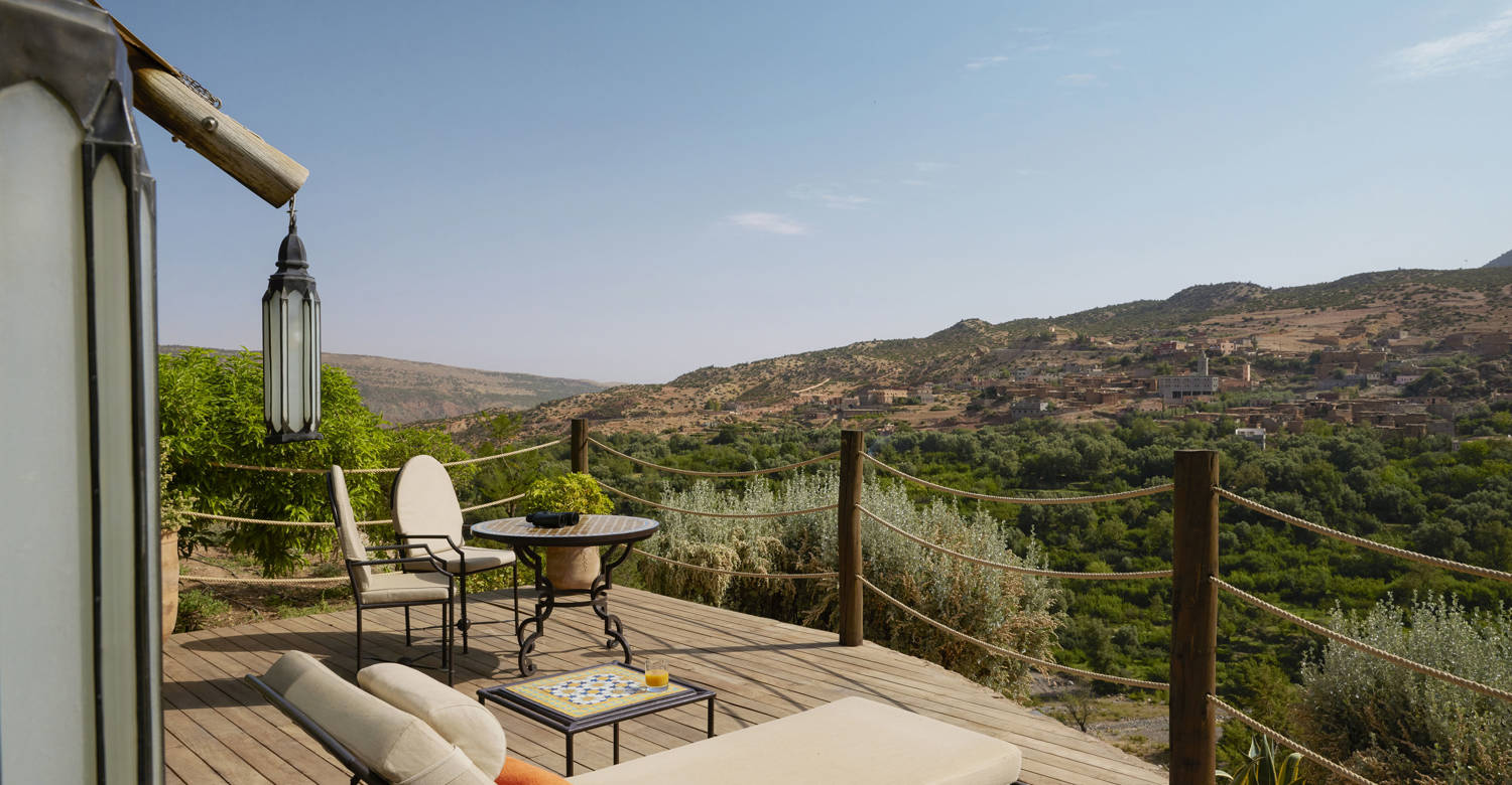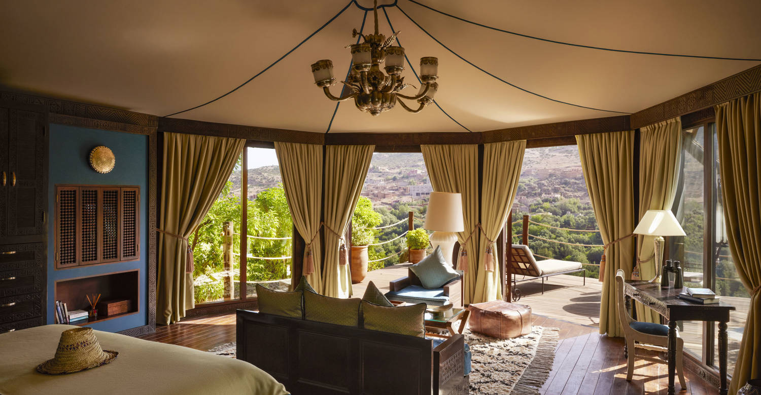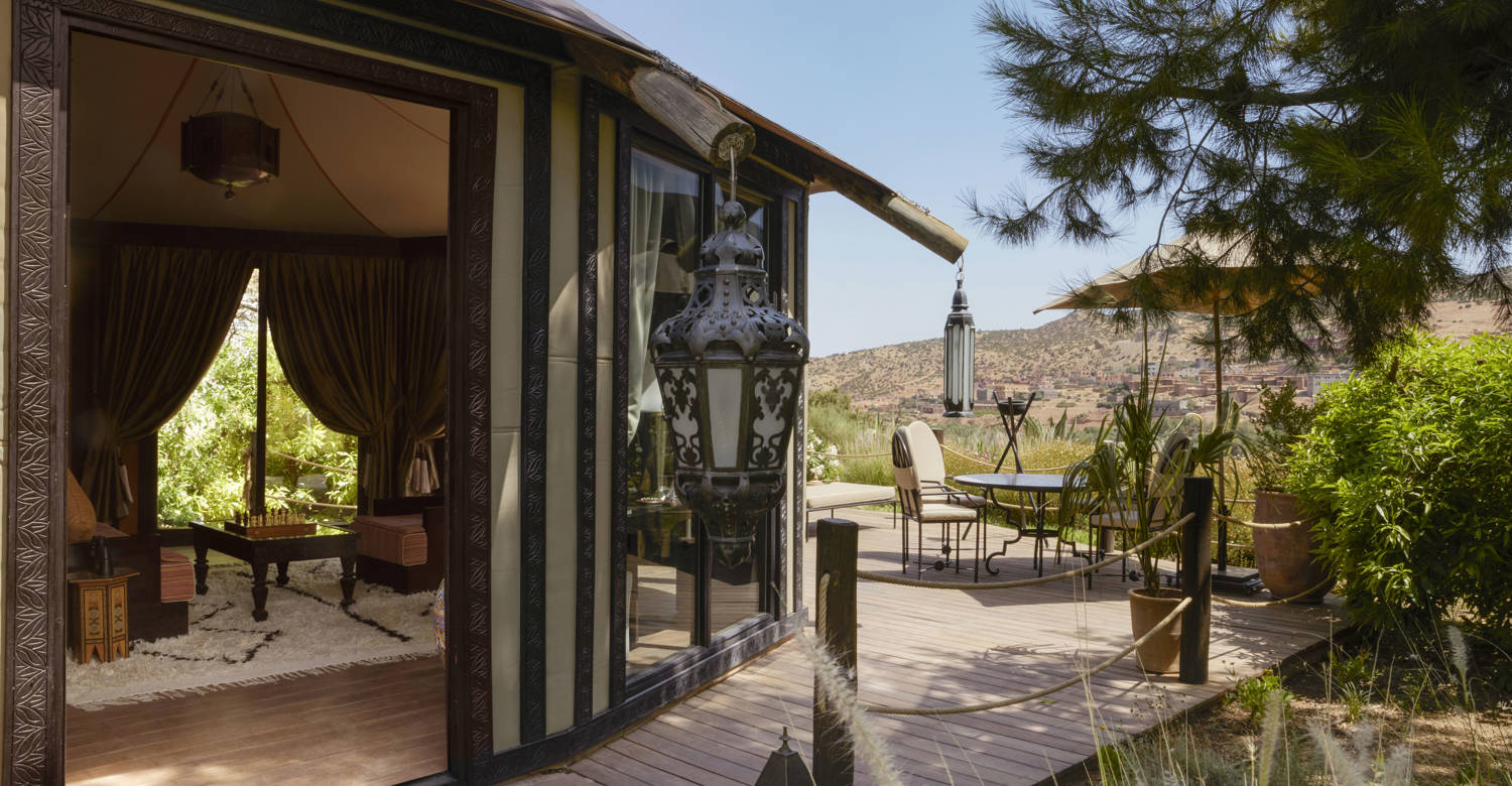 These atmospheric tented spaces perfectly capture the romance and beauty of Morocco. Think draped fabrics, traditional glass lanterns and majestic carved furniture, with floor-to-ceiling windows framing the landscape. Each luxury Berber tent has a king-size bed, a large bathtub for soaking in as you gaze over the mountains, and its own private terrace with sun loungers. There’s even an outdoor dining area, for magical evening meals – and not a tent peg in sight!