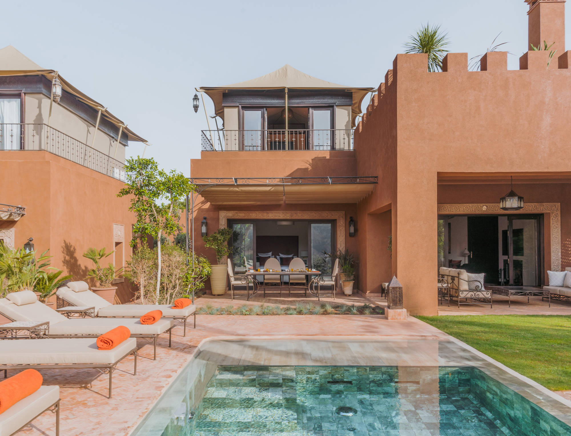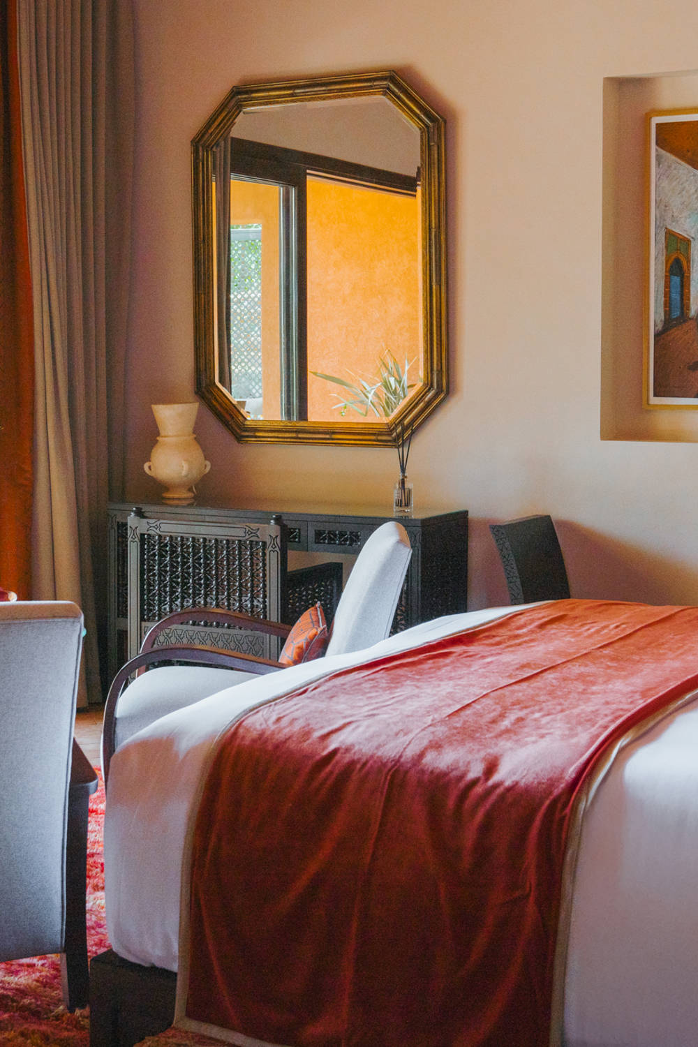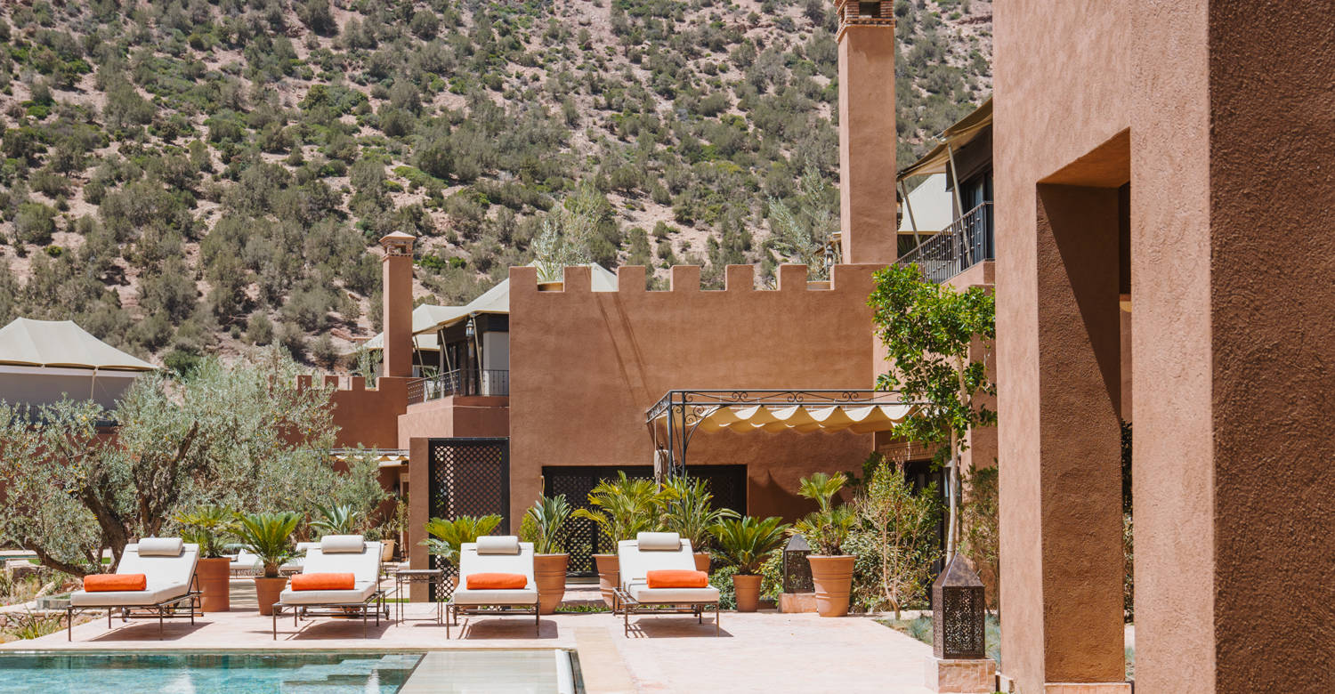 The Riad Pool Suites are the ultimate private escape, each featuring a king-size bed and en-suite bathroom with a waterfall shower and large bathtub. A separate lounge offers ample space for indoor relaxation, complete with a charming fireplace that enhances the cosy atmosphere. The lounge opens to a beautiful garden and terrace, home to a private heated pool and sun loungers perfectly positioned to admire those mountain vistas.