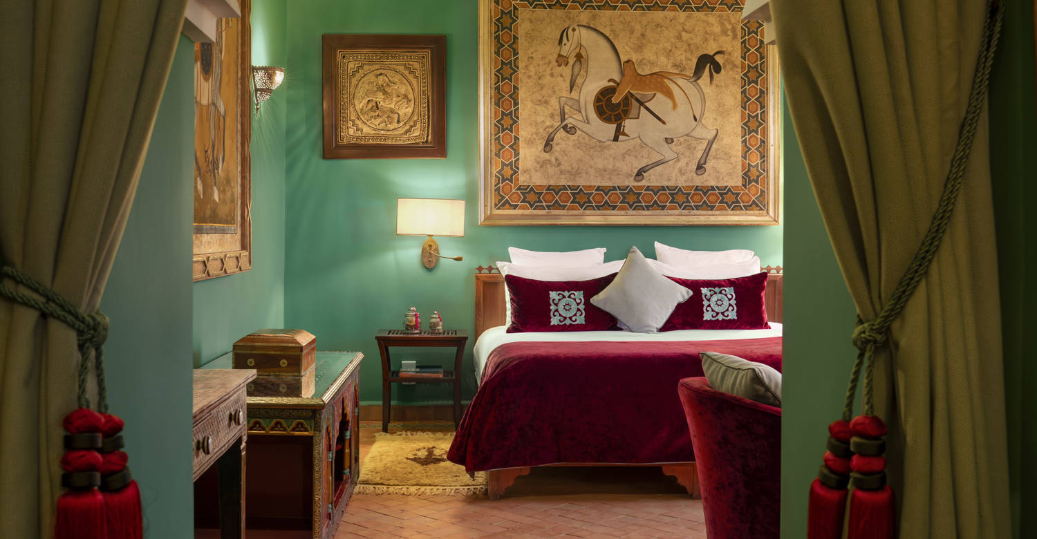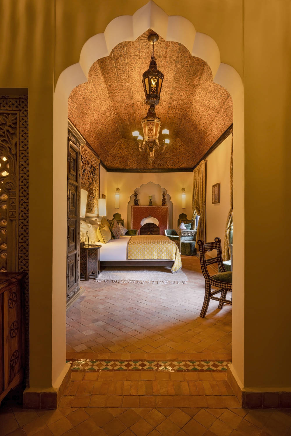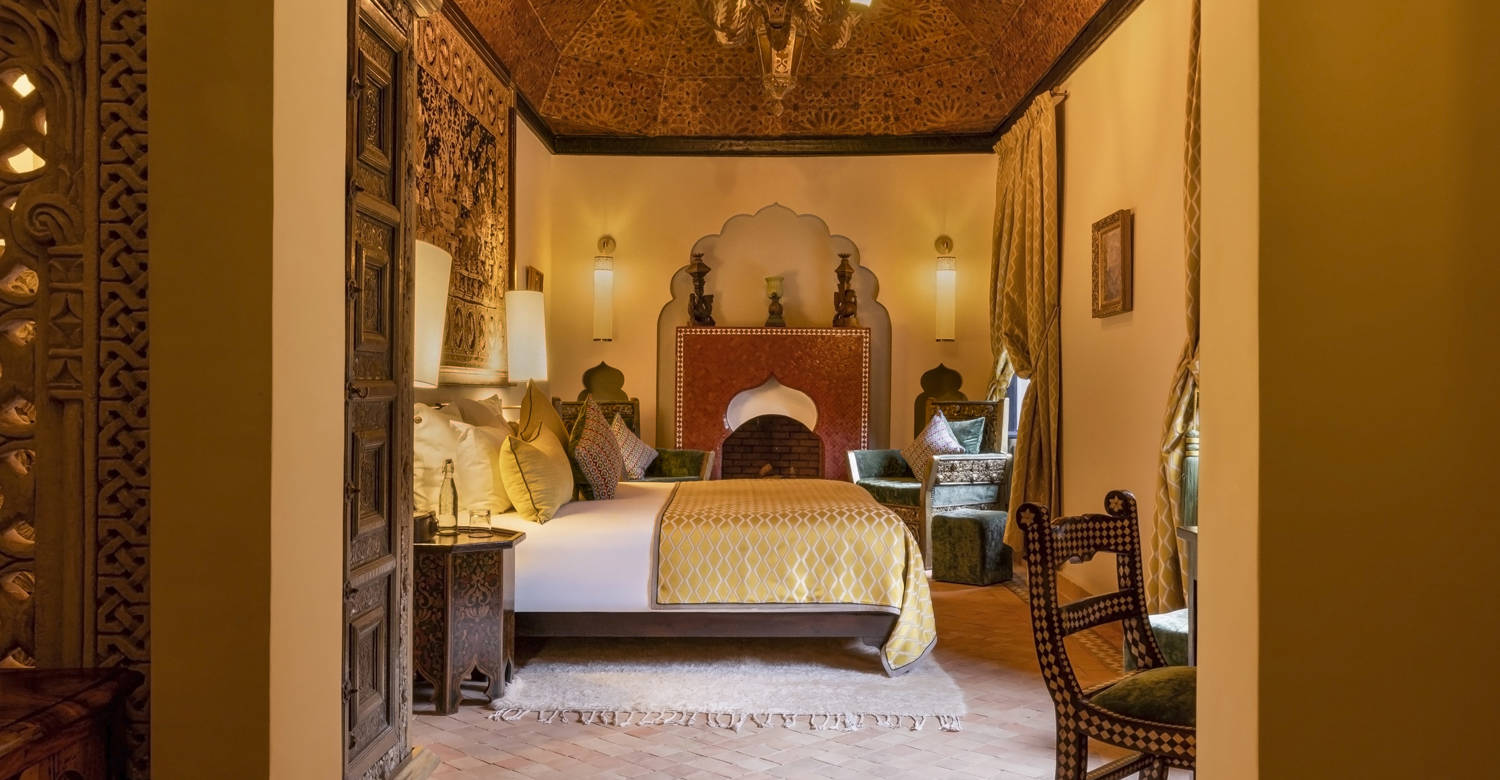 Our beautiful Superior Rooms epitomise Moroccan grandeur. Rich textiles, intricately carved furniture, and soft lighting create an inviting atmosphere in these elegant spaces, each of which has its own distinct mood and feel. One room looks into the front courtyard, the second looks into a peaceful interior courtyard.