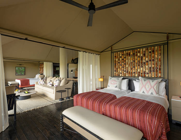 At Mahali Mzuri, families can enjoy the magic of the Maasai Mara together in our spacious two-bedroom family tent, perfect for parents travelling with children. Featuring two ensuite bedrooms and a shared lounge area, it offers both comfort and privacy while keeping the whole family close.