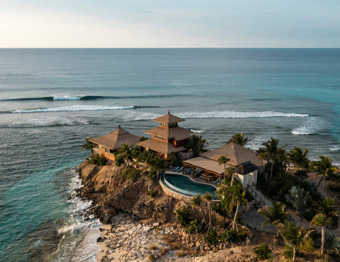 natural stone and a thatched roof, where swing seats invite you to sip on your favourite cocktail while soaking in the stunning sea views.