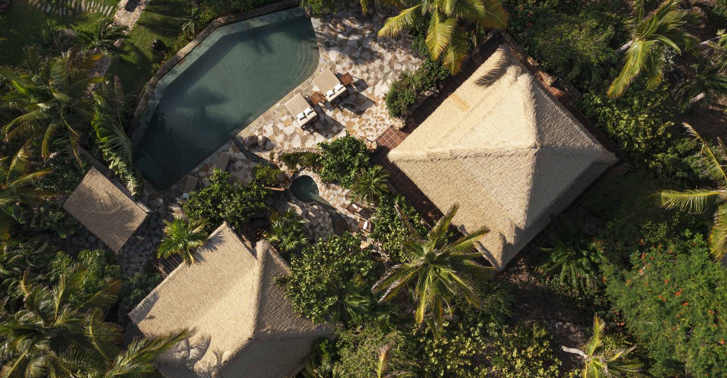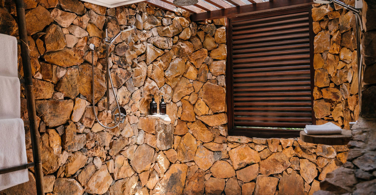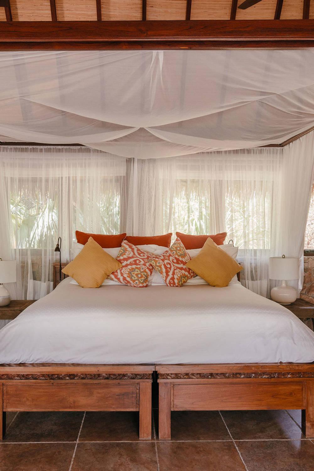 Expect all the features of a traditional Balinese house: stone, wood and glass materials that blend in with the exquisitely manicured tropical gardens all around. This large and lovely sleeping space with a king-size bed has windows on all four sides and opens out onto a furnished terrace with views of the pool. Downstairs, you’ll find the en-suite bathroom with double showers and the pristine pool area of the Bali Lo Complex.