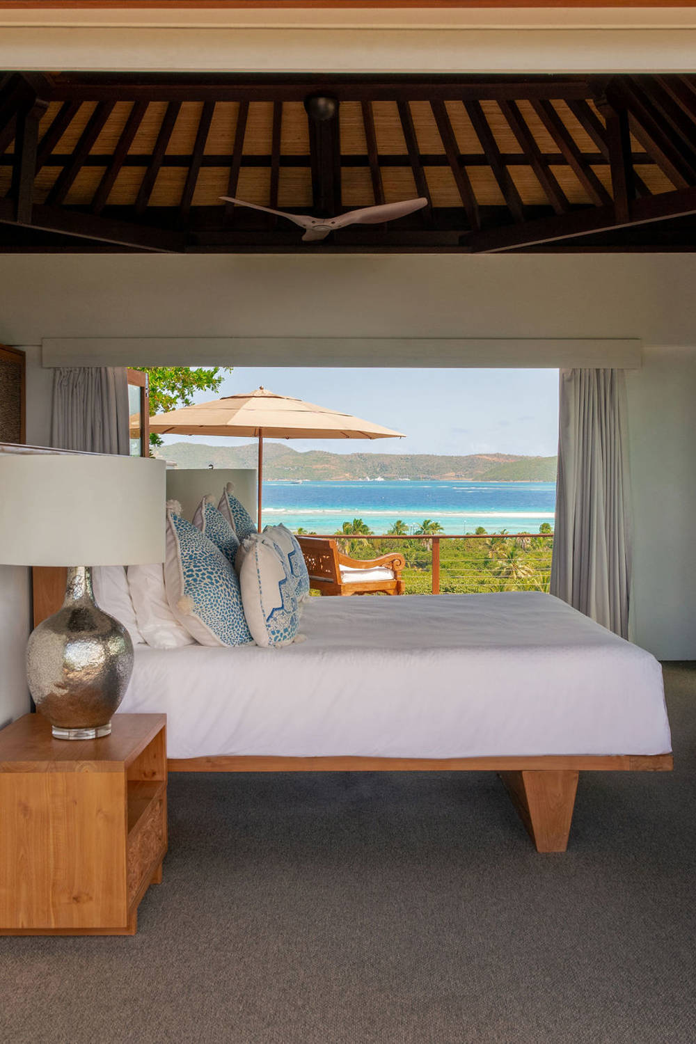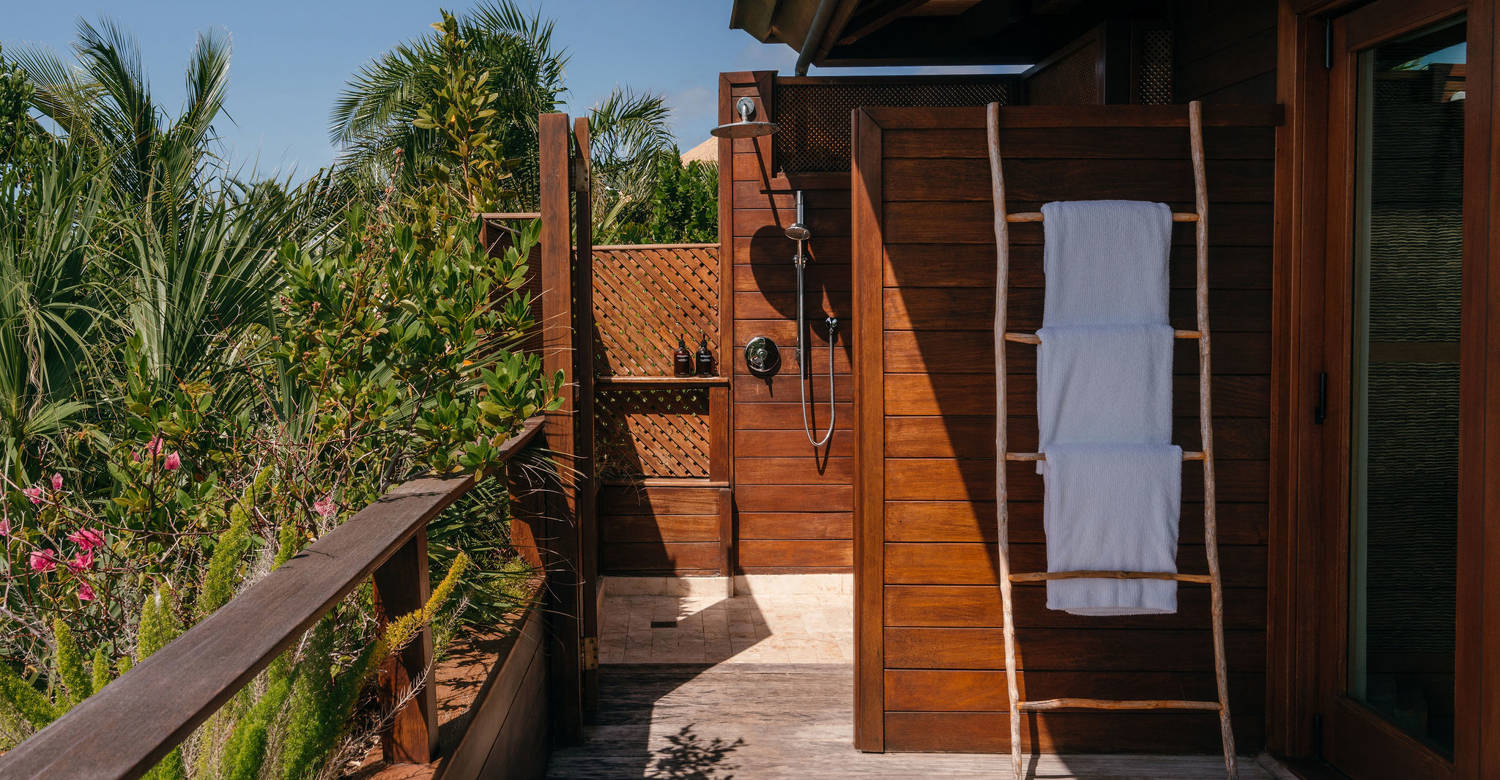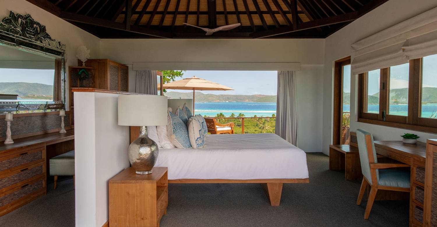 Not far from the shared pool, Temple Master has spectacular views of the island and its own freestanding marble bathtub.