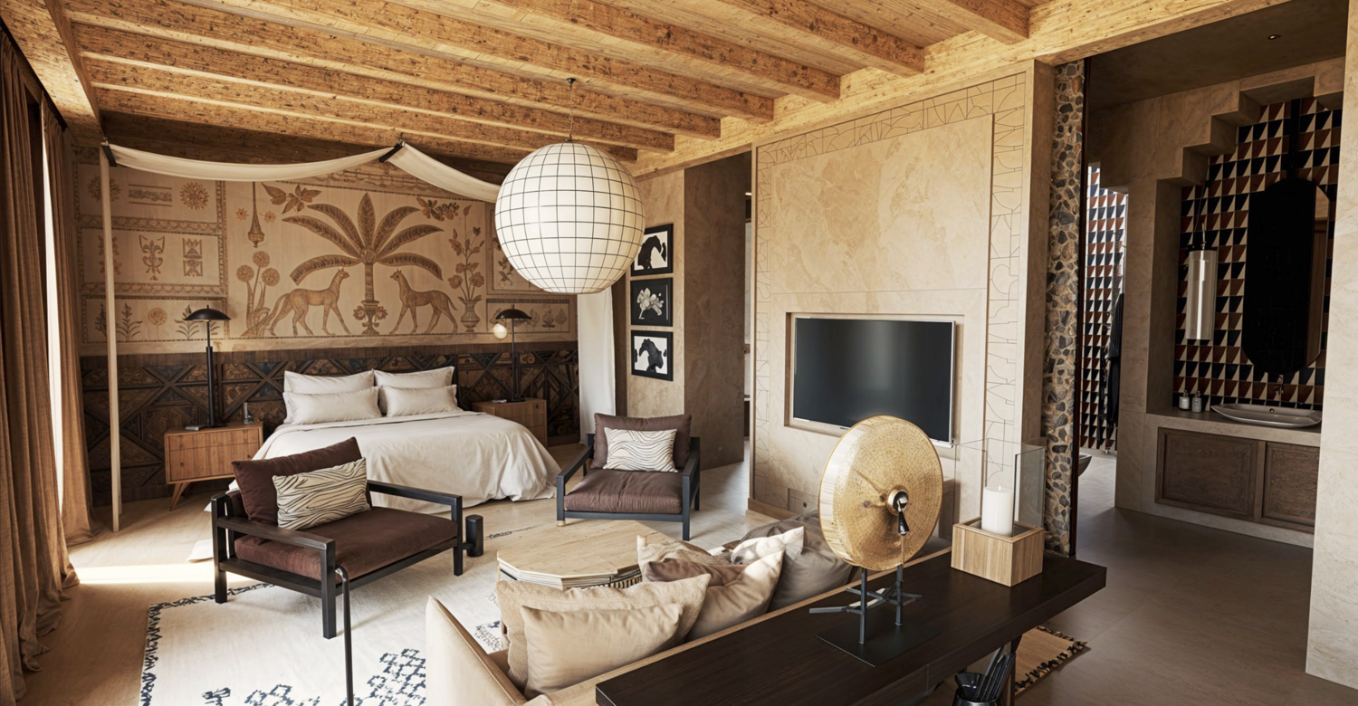 Rooted in place and shaped by the land, this Virgin Limited Edition retreat will honour the traditions and craft of Moroccan design. Buildings sit discreetly among the farmland, their forms echoing the authentic agricultural heritage of the region, their walls built from local stone and wood. Inside, the work of Moroccan and African artists is woven throughout, and a versatile events space will open its doors as a pop-up gallery, giving local creatives a platform to tell their own stories.