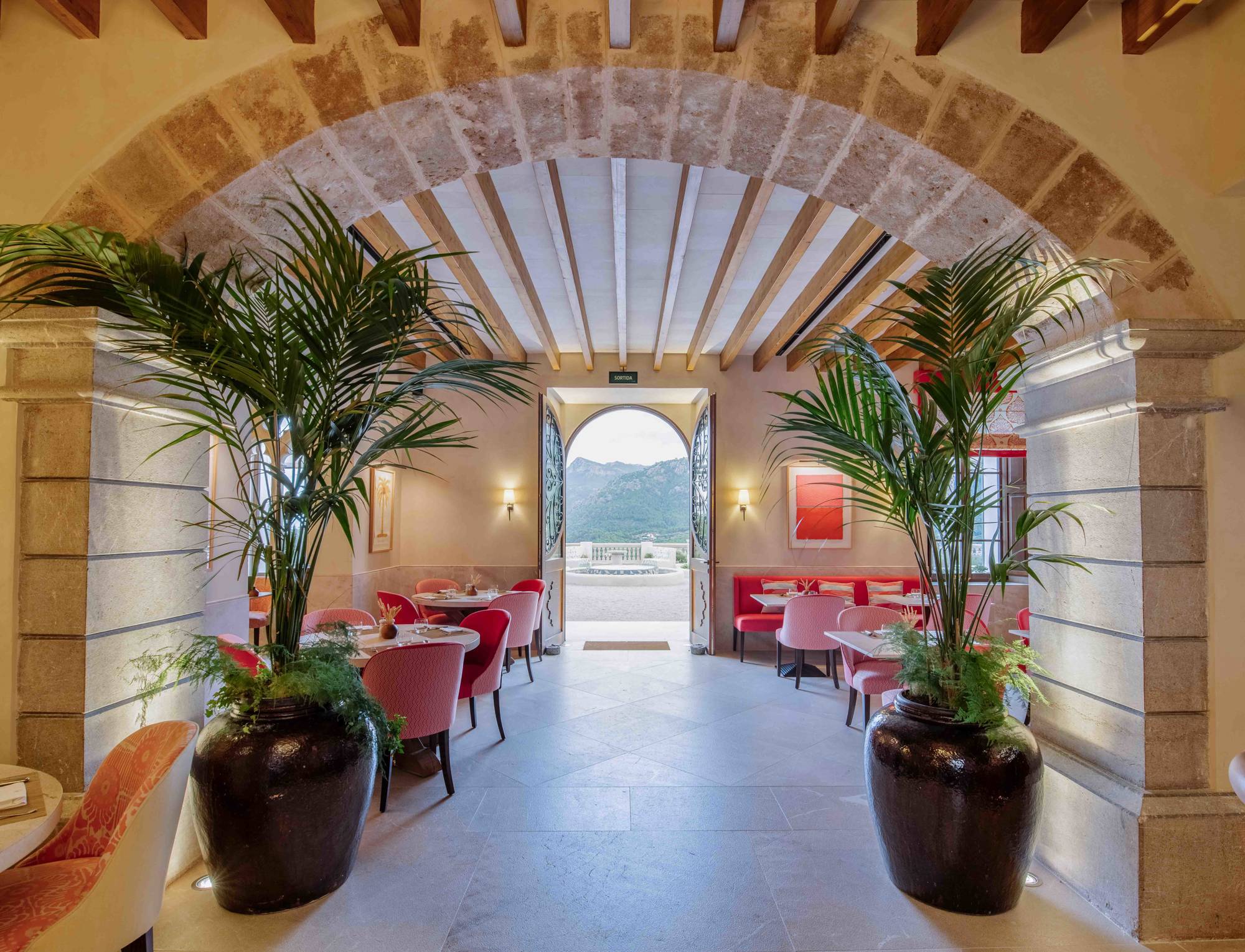 Sa Terrassa, the hotel's main restaurant, takes its name from the stunning location in front of the Finca's striking facade.
