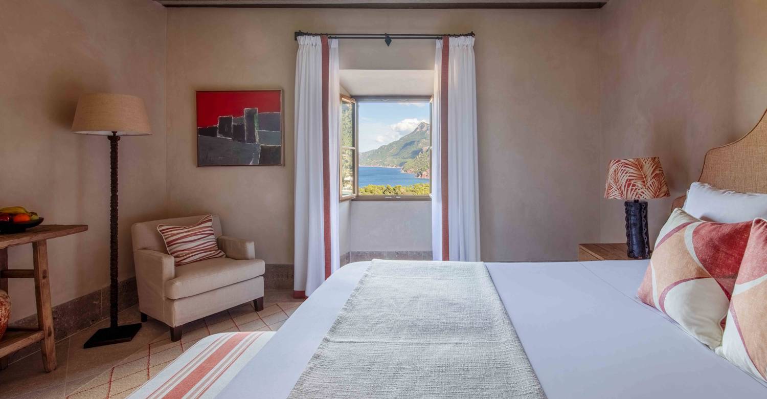 Cada una de las habitaciones con vista a la montaña tienen su propio carácter y vistas preciosas al paisaje mallorquín.