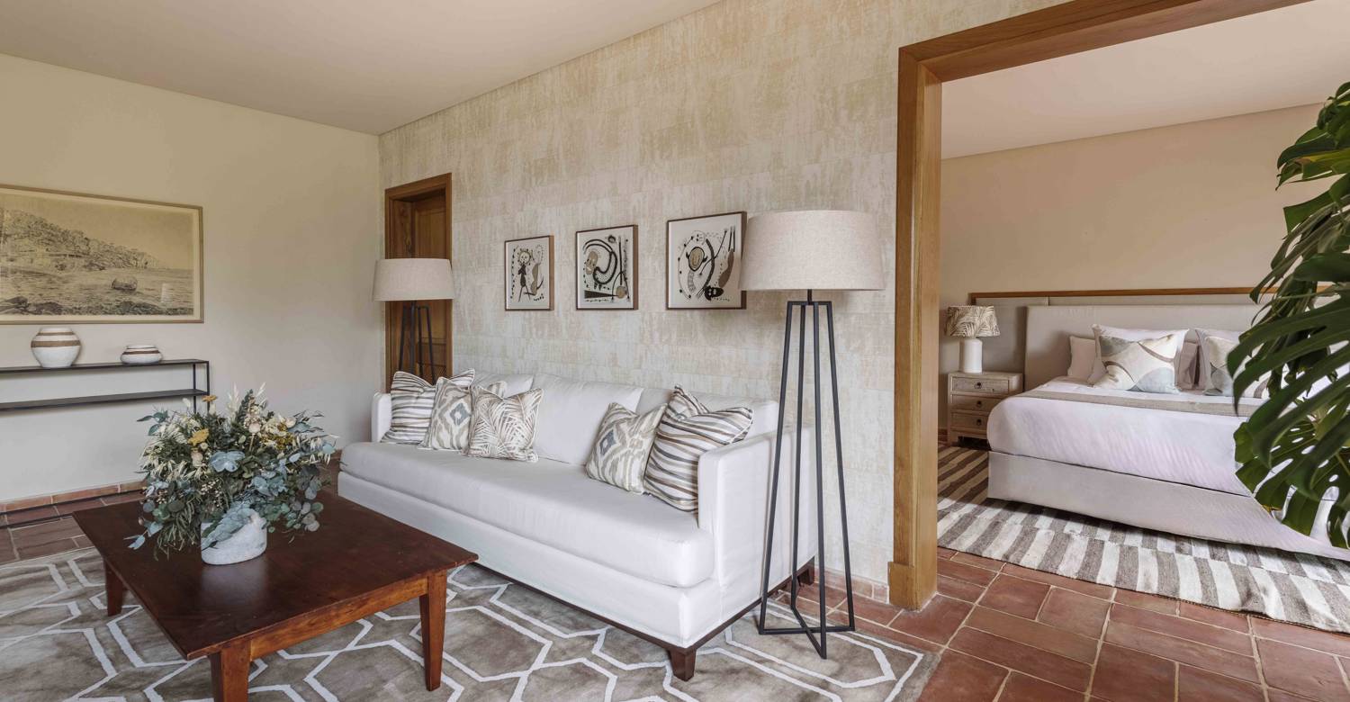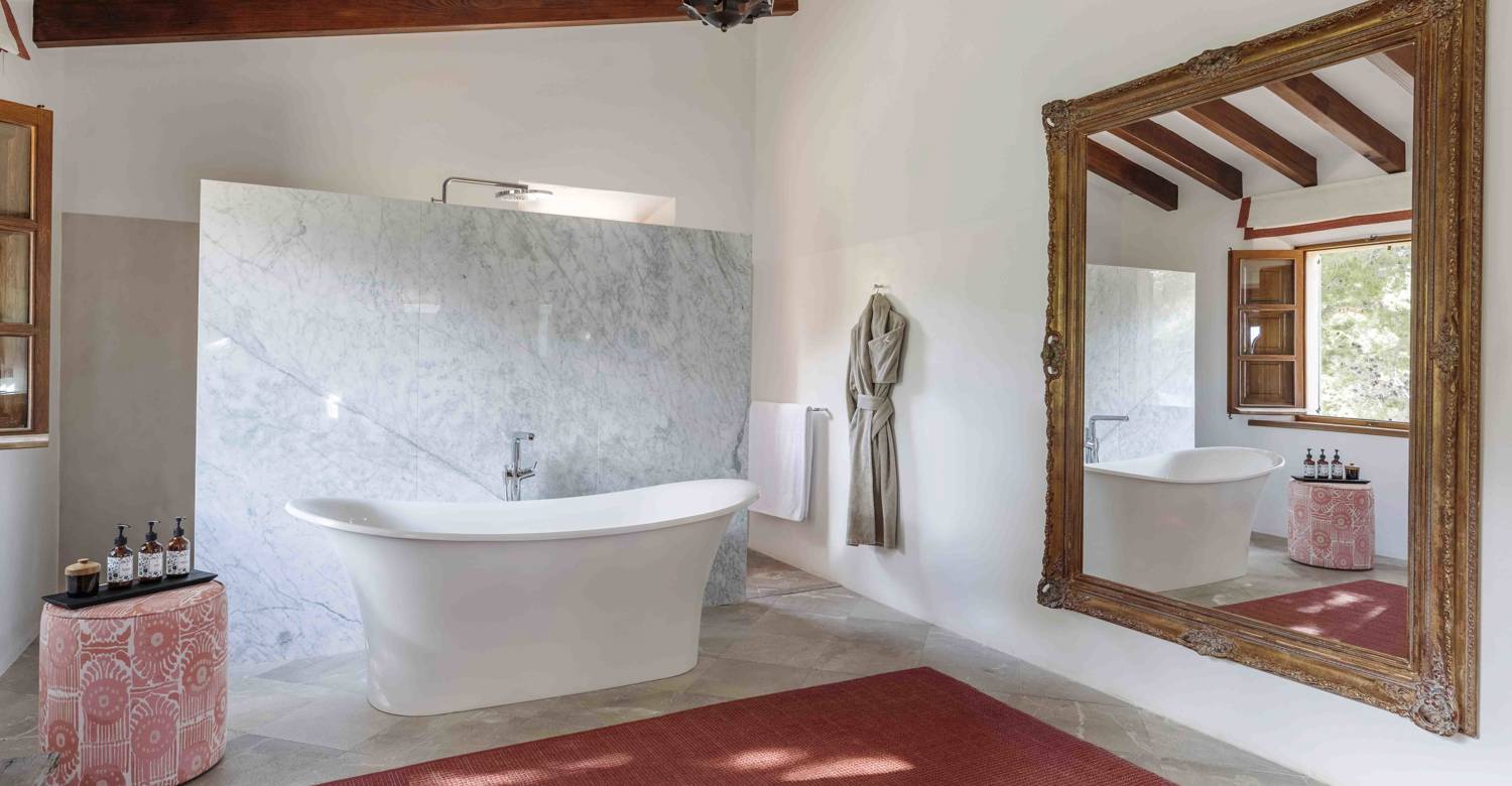 Sa Punta de S’Aguila se traduce como “Punta del Águila”, y es fácil ver por qué: esta villa de cinco dormitorios domina unas vistas magníficas de la costa y las montañas. Entra en esta espaciosa villa y admira los numerosos elementos mallorquines, desde las vigas de madera expuestas en el techo hasta las baldosas de terracota en el suelo. Los dormitorios están distribuidos en tres niveles, y todos cuentan con baño en suite con comodidades de Gaia, así como con una terraza exterior con zona de estar y vistas al Mediterráneo.