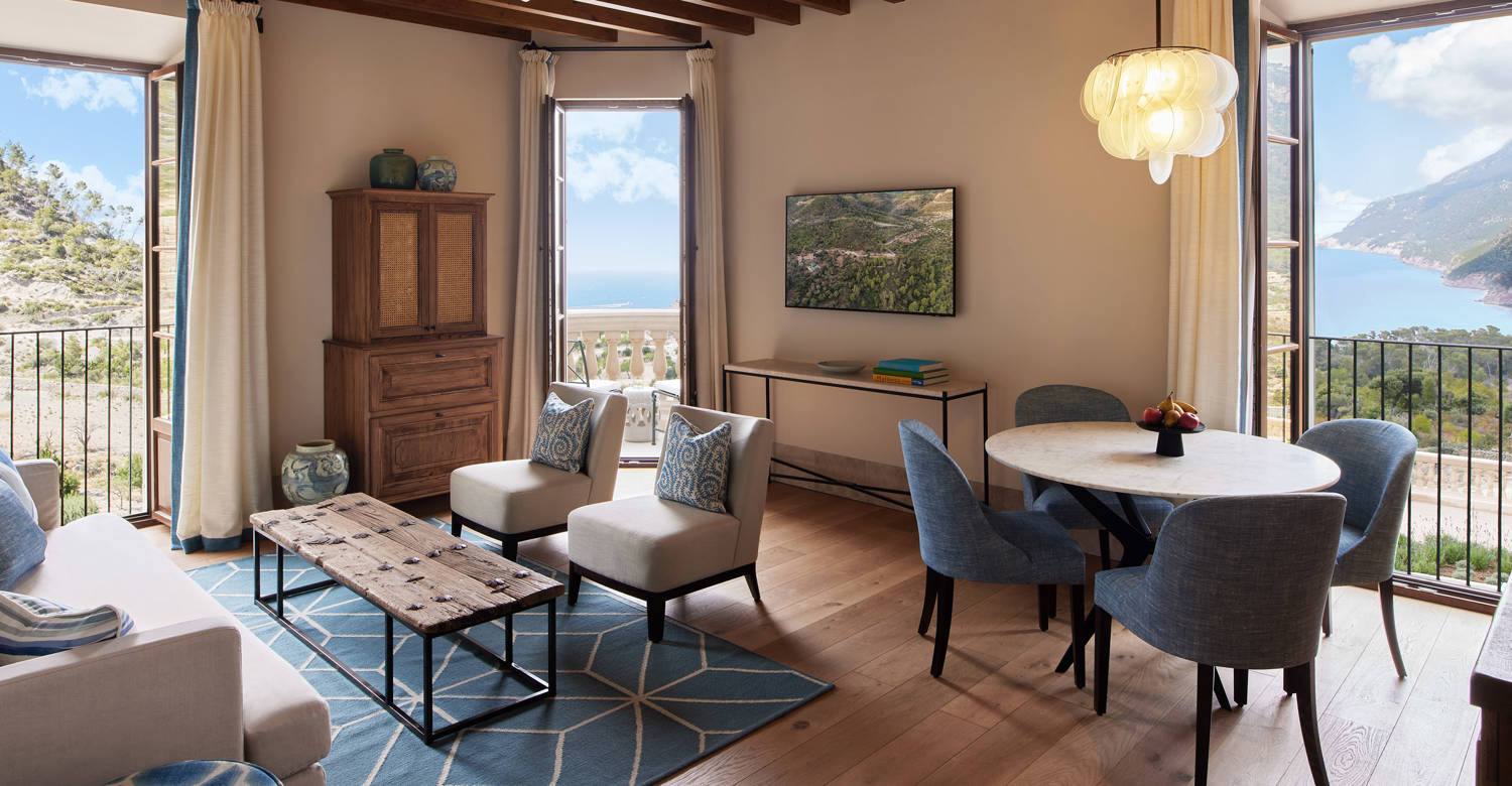 Superior Suites are unique with either mountain or sea views, as well as an outdoor space.