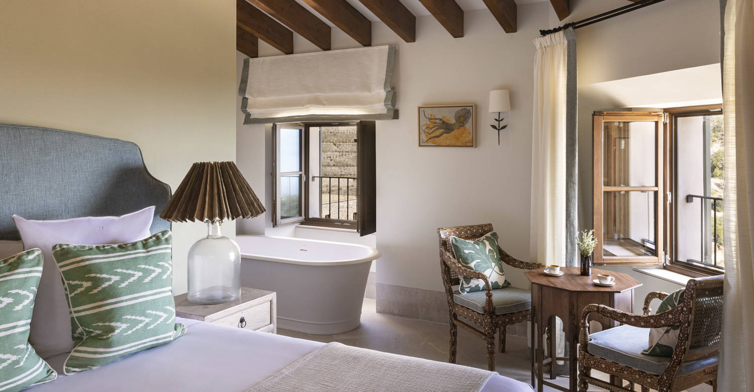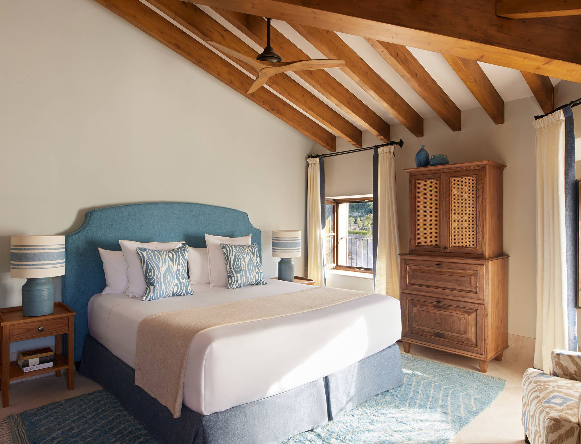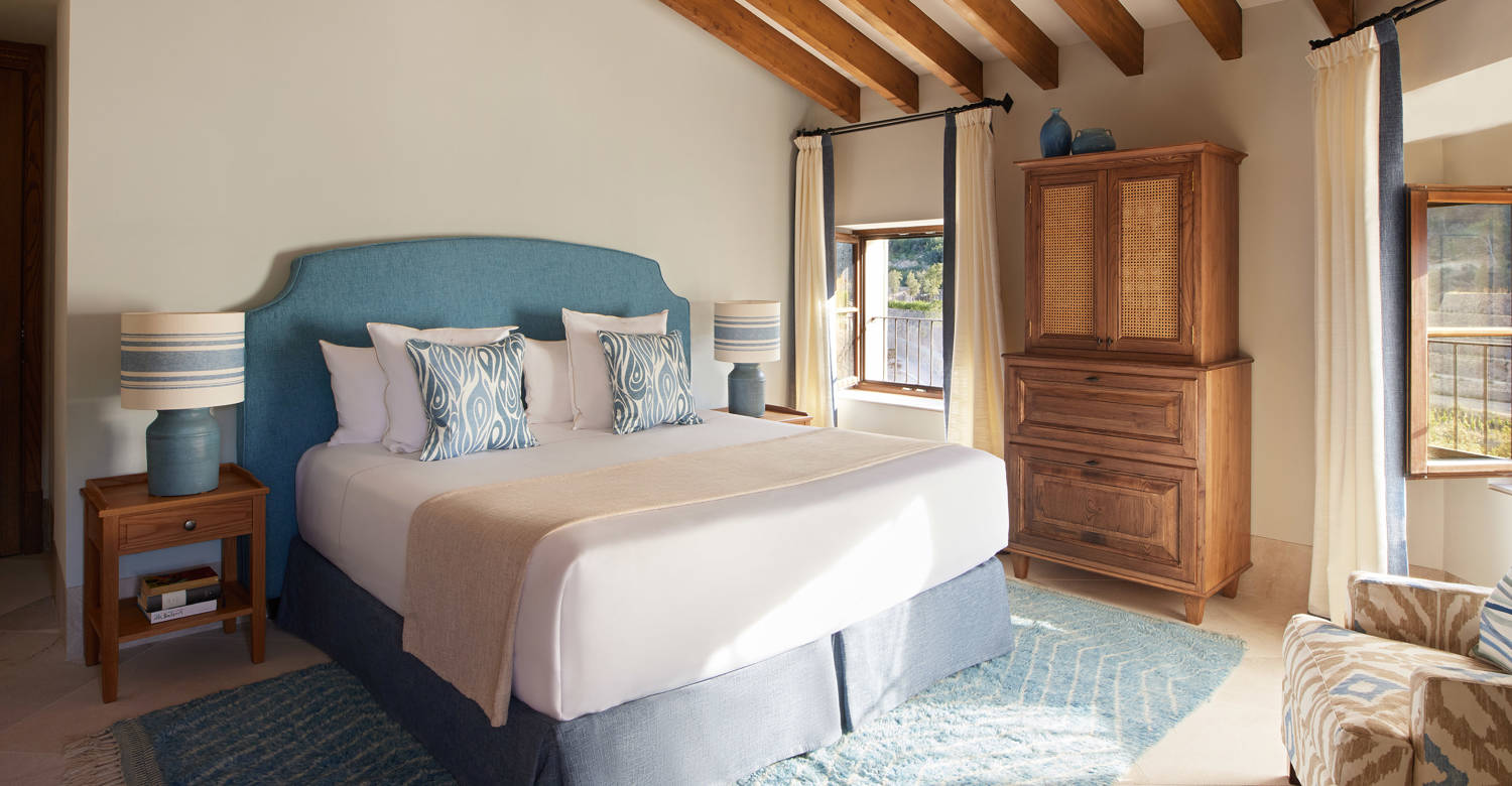 Wake up in the morning, throw open the curtains and breathe it all in: fresh mountain air, beautiful views and dazzling sunshine. Welcome to mesmerising Mallorca. Situated in the main manor house of our luxury Mallorca hotel, the Mountain View rooms sleep two in a king-size or twin bed, with a relaxing shower and bath in the en-suite, and two rooms featuring only a shower. Each calming space has been thoughtfully decorated to reflect traditional Mallorcan design elements, and you’ll find every modern comfort, with beautiful bespoke textiles, all around.