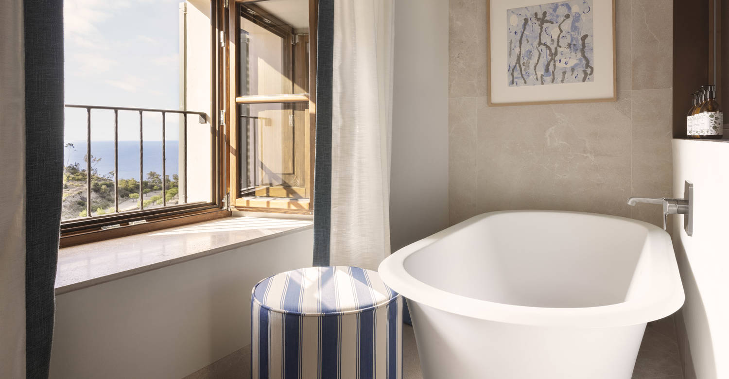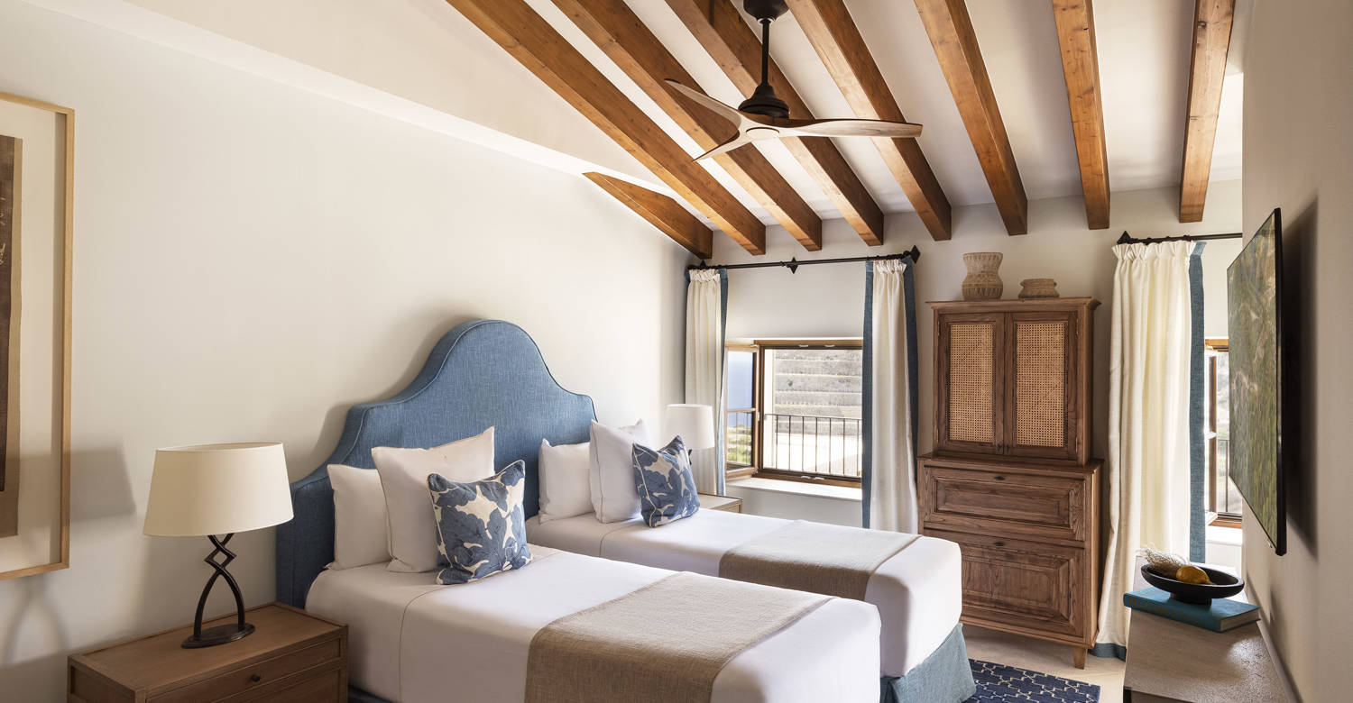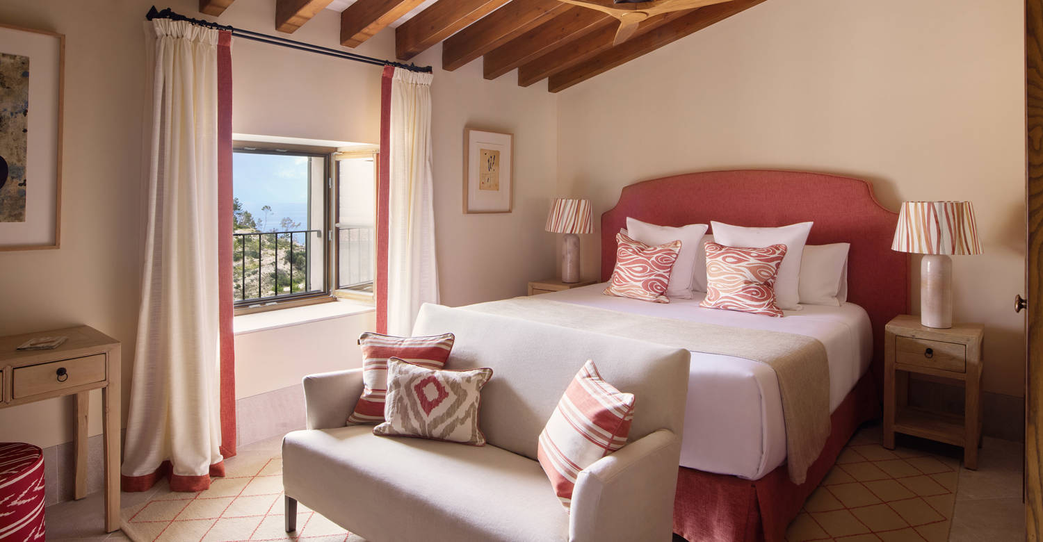 Wake up in the morning, throw open the curtains and breathe it all in: fresh mountain air, beautiful views and dazzling sunshine. Welcome to mesmerising Mallorca. Situated in the main manor house of our luxury Mallorca hotel, the Mountain View rooms sleep two in a king-size or twin bed, with a relaxing shower and bath in the en-suite, and two rooms featuring only a shower. Each calming space has been thoughtfully decorated to reflect traditional Mallorcan design elements, and you’ll find every modern comfort, with beautiful bespoke textiles, all around.
