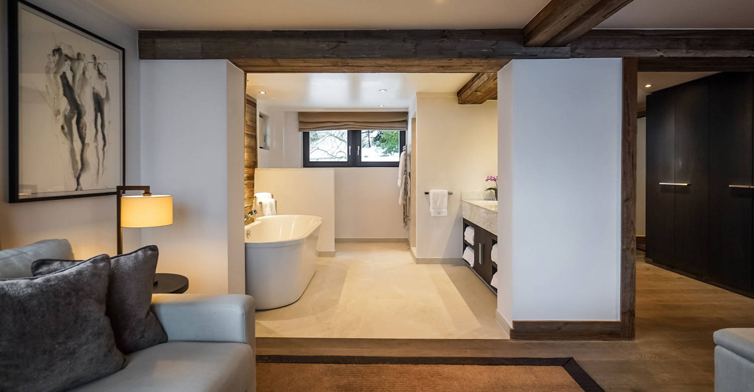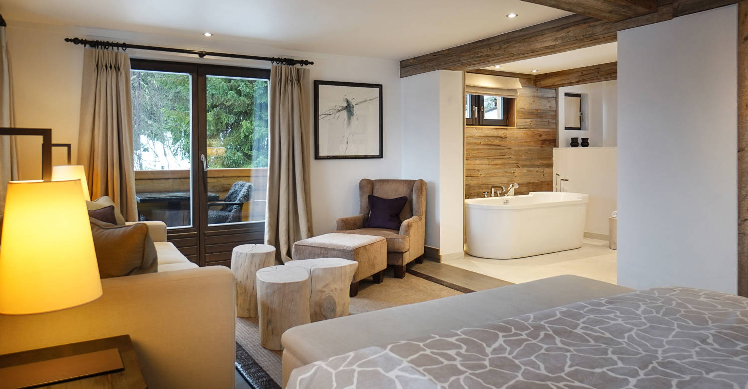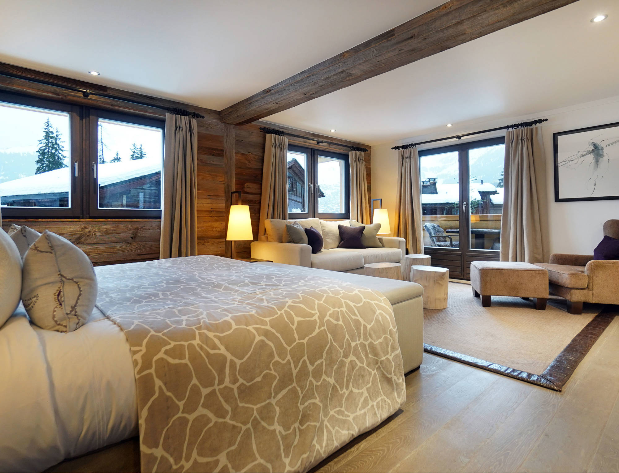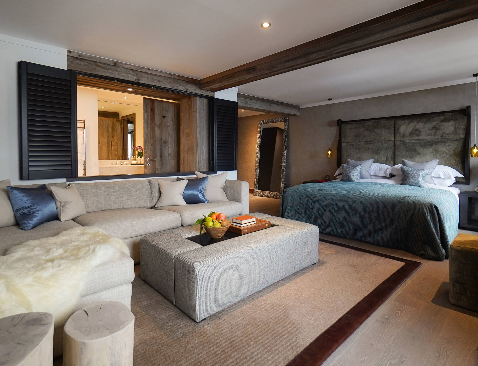 With traditional wooden beams, a decadent central fireplace and balconies commanding awe-inspiring mountain views, our two enormous Master Suites are the perfect place to unwind after an action-packed day in the Swiss Alps.