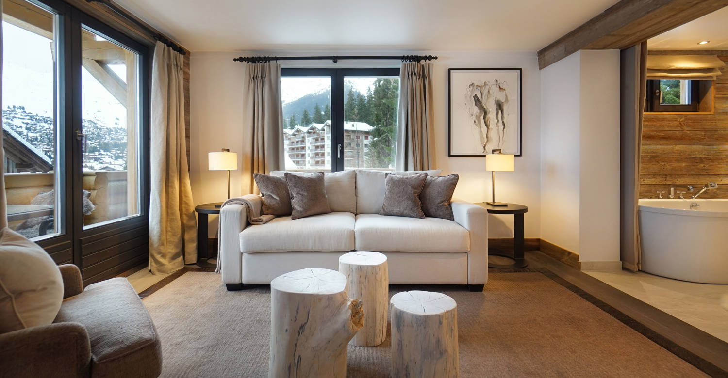 Our Lodge Suites are perfect if you’re searching for a little more room to spread out, with a generous 28 to 33 square metres in which to get comfortable. Each has a calming sleeping area, luxurious en-suite bathroom with separate shower and bathtub, and plenty of richly upholstered furniture to snuggle down on with a blanket and get comfortable. In winter, sink into the relaxing bathtub for a soak. In summer, grab a refreshing drink and sit out on your own private balcony, taking in the views and enjoying the alpine sun.