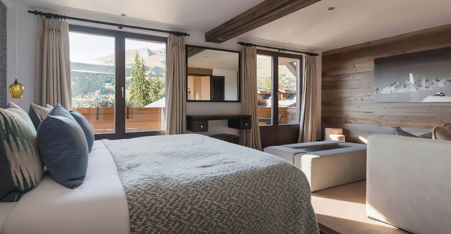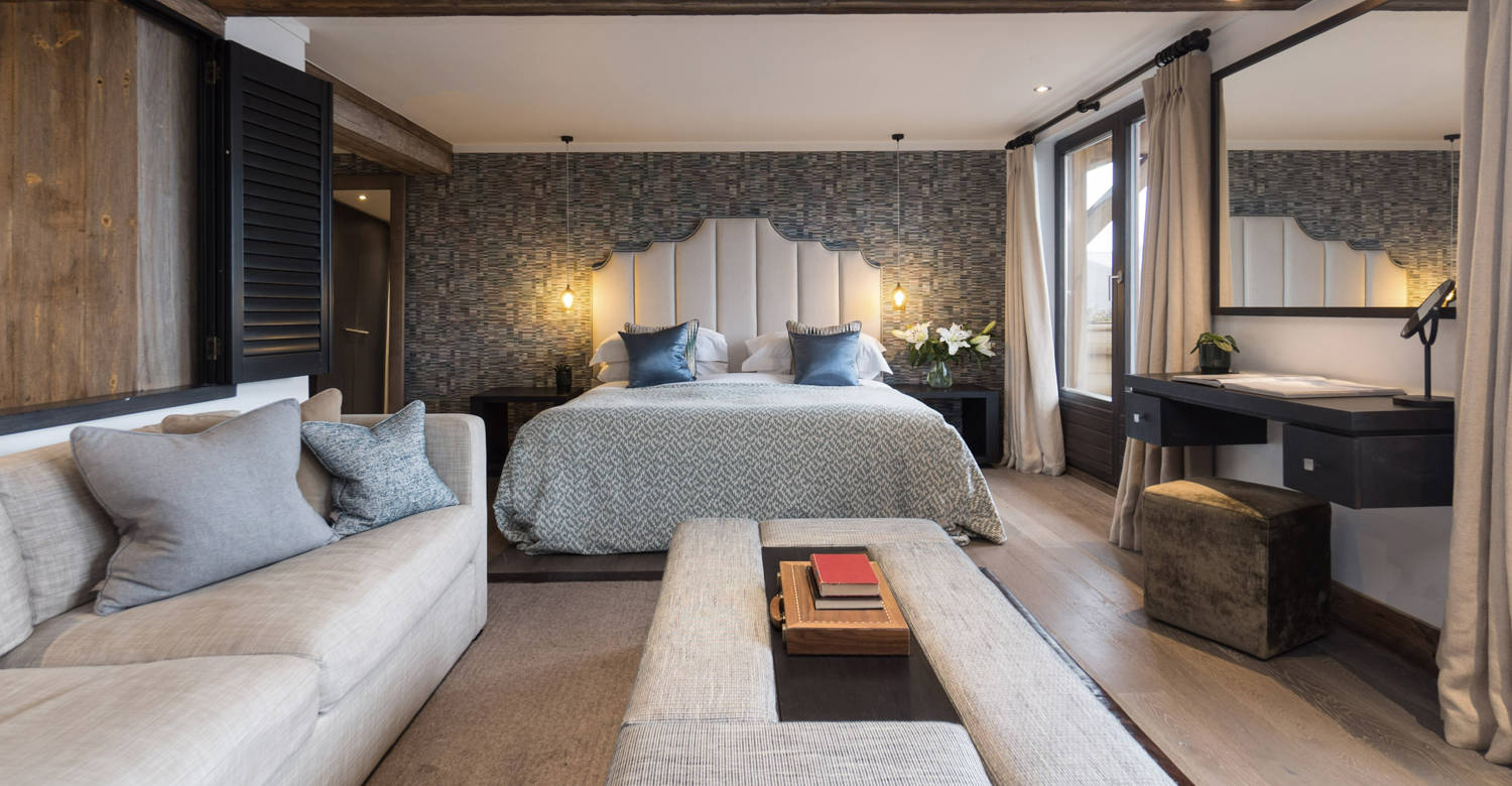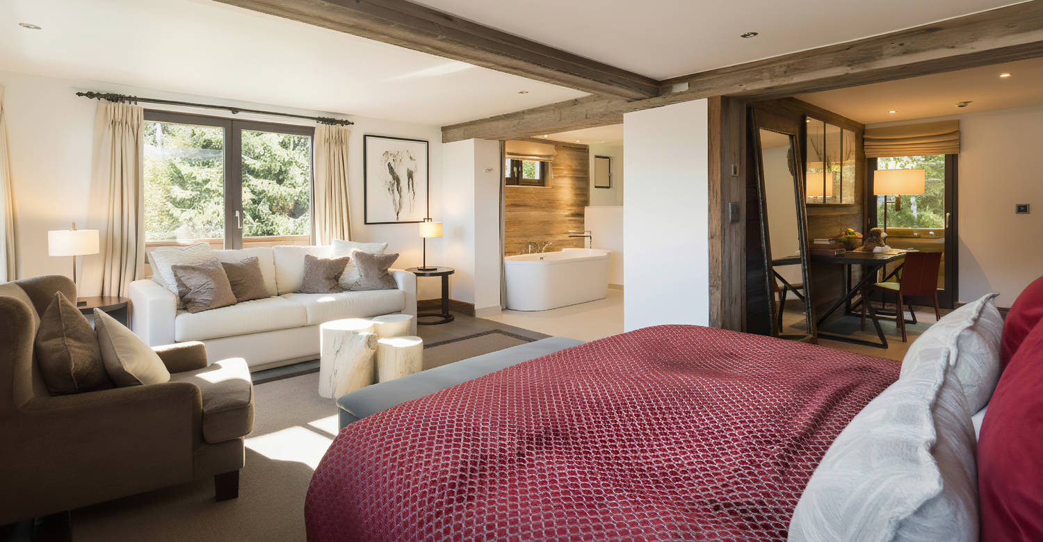 With traditional wooden beams, a decadent central fireplace and balconies commanding awe-inspiring mountain views, our two enormous Master Suites are the perfect place to unwind after an action-packed day in the Swiss Alps.