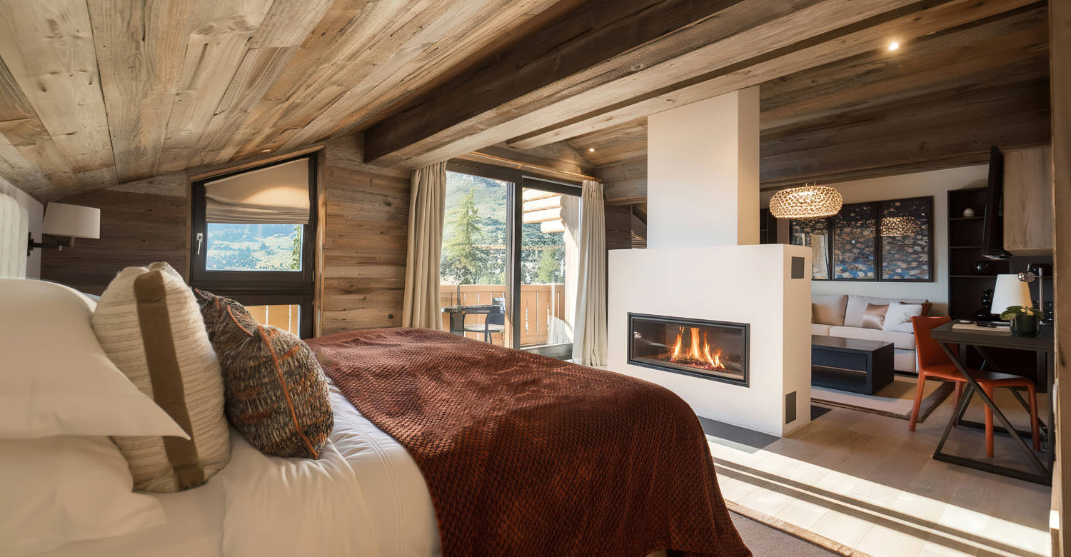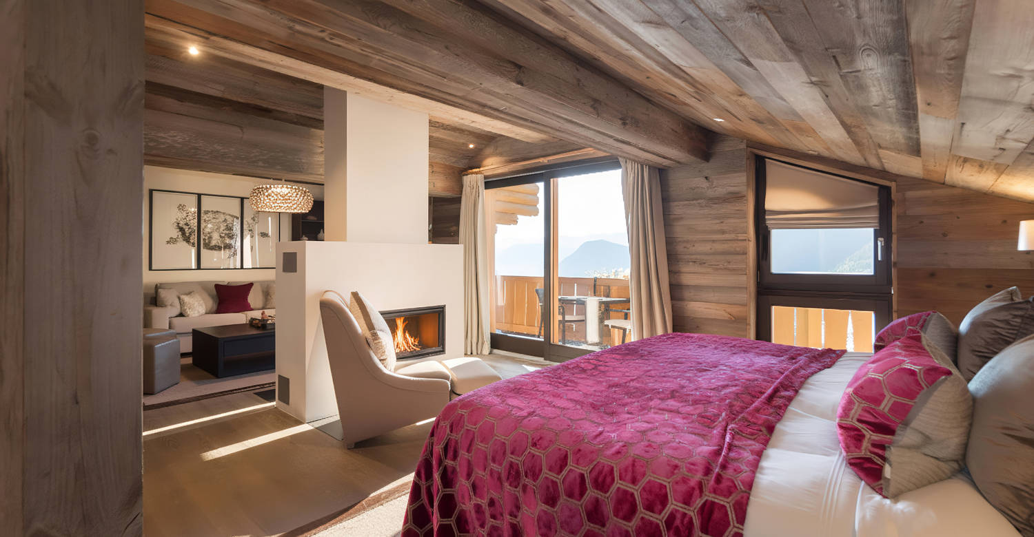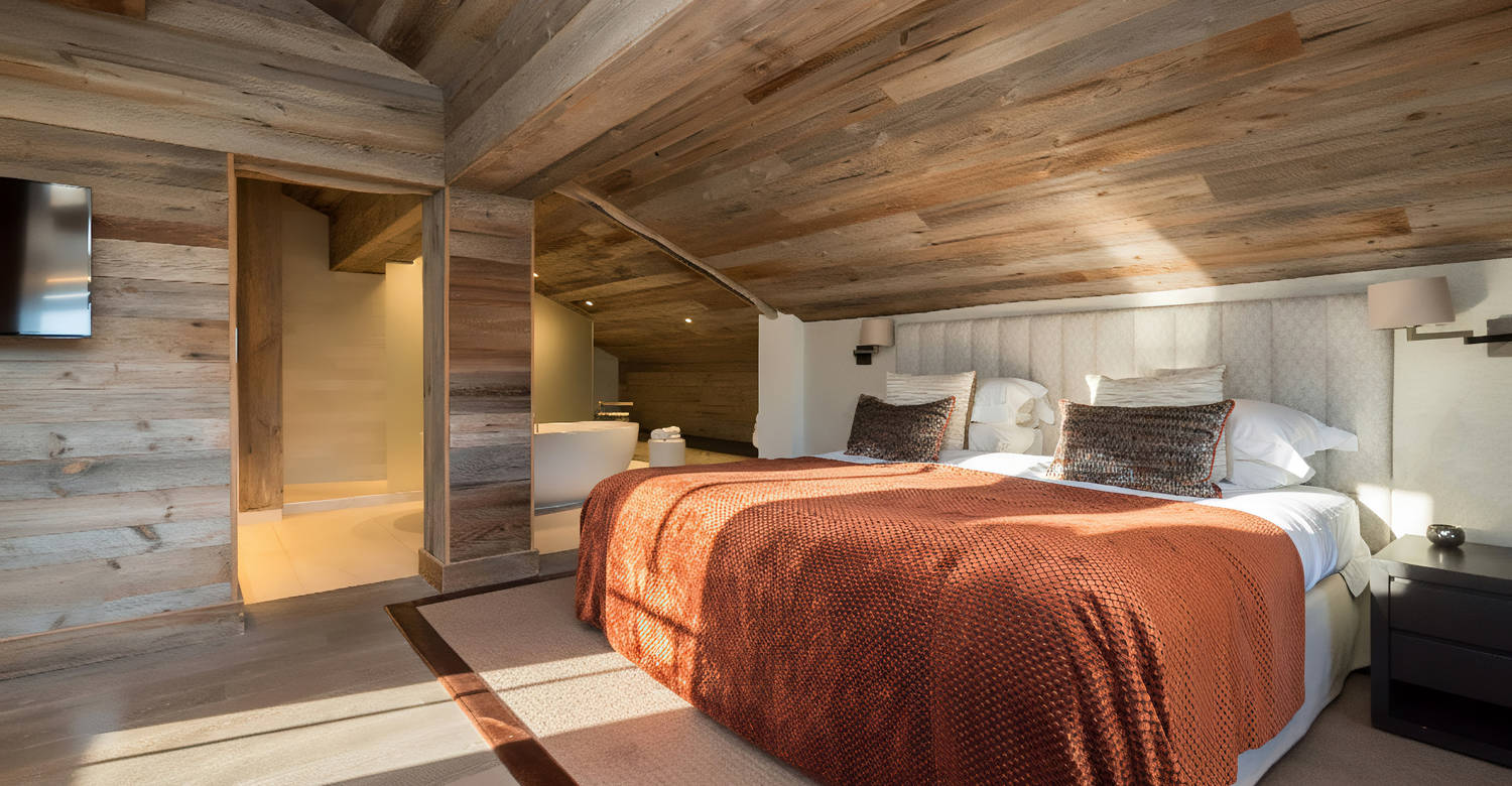 With traditional wooden beams, a decadent central fireplace and balconies commanding awe-inspiring mountain views, our two enormous Master Suites are the perfect place to unwind after an action-packed day in the Swiss Alps. Run a fragrant bubble bath and enjoy a soak in the tub, curl up on the plush sofa with a good book or simply relax in front of the fire. This is a calming, comfortable space where you can lose track of time. Both Master Suites are connected by a secret doorway hidden behind a bookcase – see if you can find it!