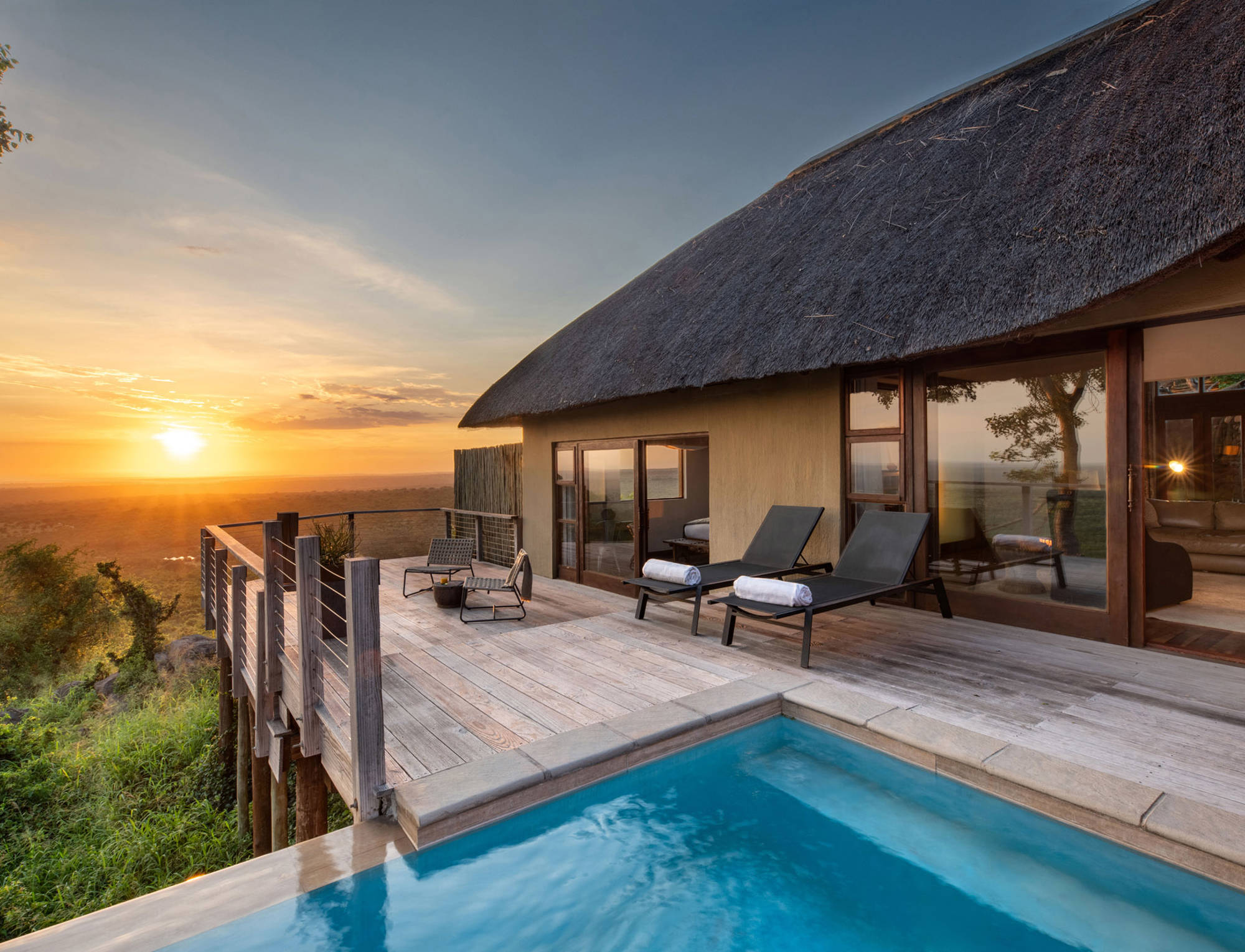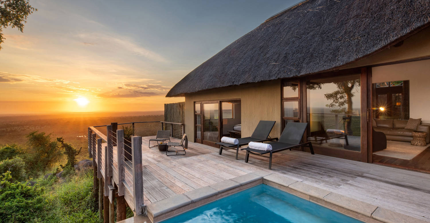 The Makwela Suites, located at Rock Lodge, are built over two levels with full en-suite bathrooms and peaceful private balconies with infinity edge plunge pools. Each has its own separate living area and study, as well as a comfortable fold-out sleeper couch suitable for children. Decorated in sumptuous textures and rich, warm tones, these are soothing spaces designed for a tranquil and luxurious safari experience.