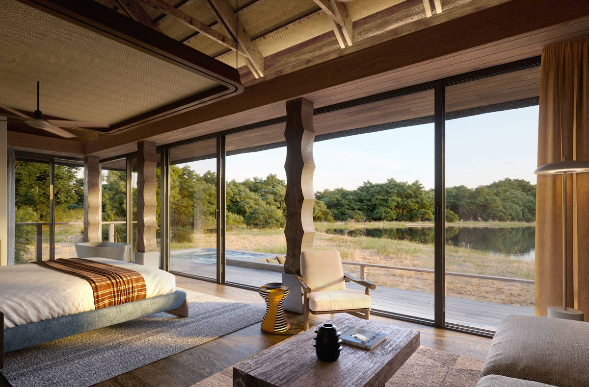 Each suite is designed with floor-to-ceiling glass doors, private plunge pools, and spacious decks that invite quiet moments of observation. Safari Lodge also offers inviting communal spaces, including an indoor dining room, outdoor deck, indoor bar, wine cellar, boma, spa, gym, and swimming pool, bringing comfort, connection, and the rhythm of the wild together in one unforgettable setting.