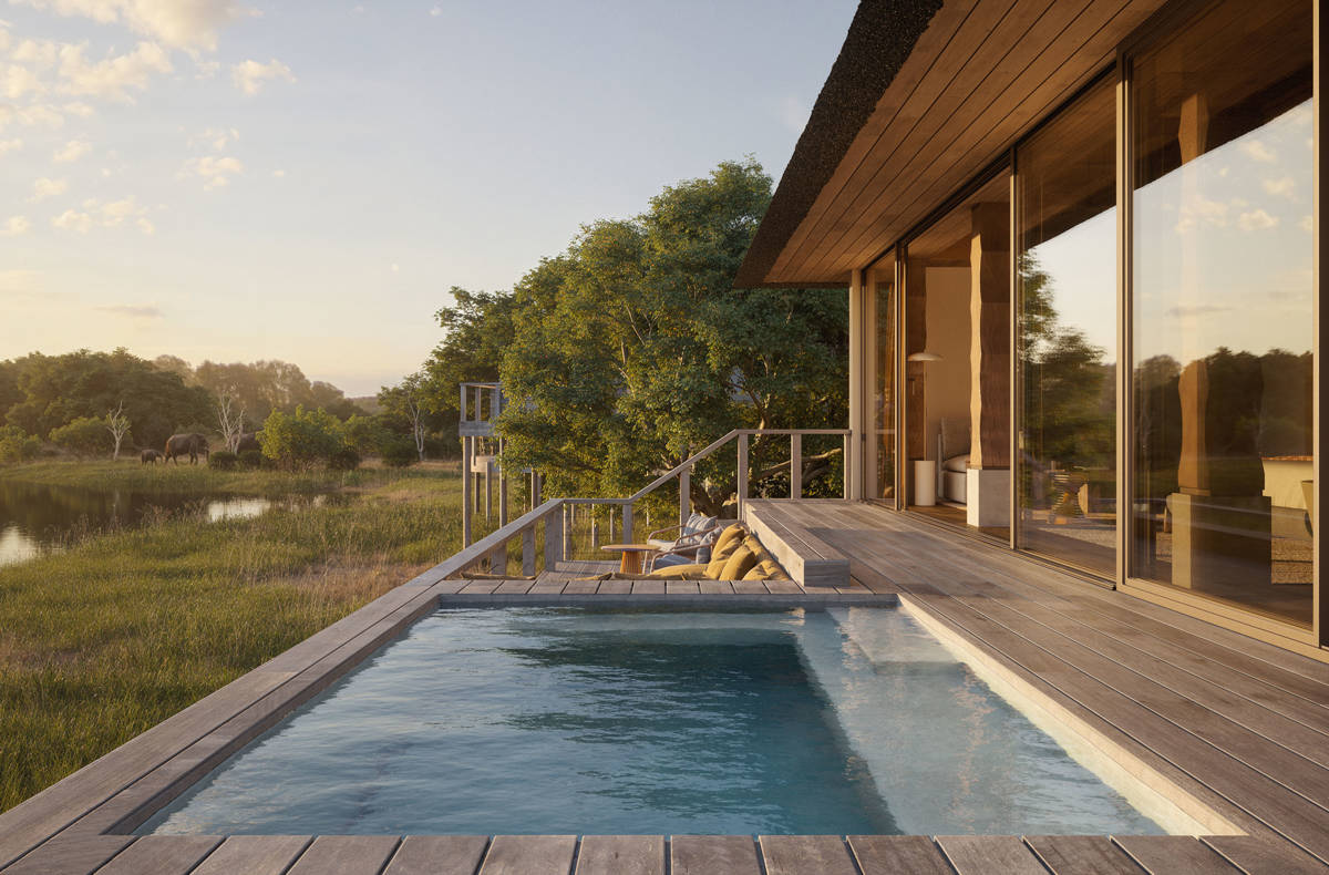 Positioned along a dry riverbed and active wildlife corridor, the Elephant Suites immerse guests in tranquil savannah surroundings and a deep connection to nature. Inspired by Tsonga heritage, the design blends vibrant textures and artisanal detailing to create an elevated yet soulful retreat that feels seamlessly connected to the wild