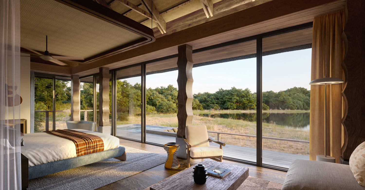 Elevated above the water, The Hide’s three exclusive treehouse-style suites provide serene lake views and the chance for intimate wildlife encounters. Interiors marry organic textures, artisanal detailing, and cultural vibrancy, while a shared main lounge, expansive deck, dining areas, and firepit create a welcoming space for small groups or families, offering a perfect balance of privacy and communal connection