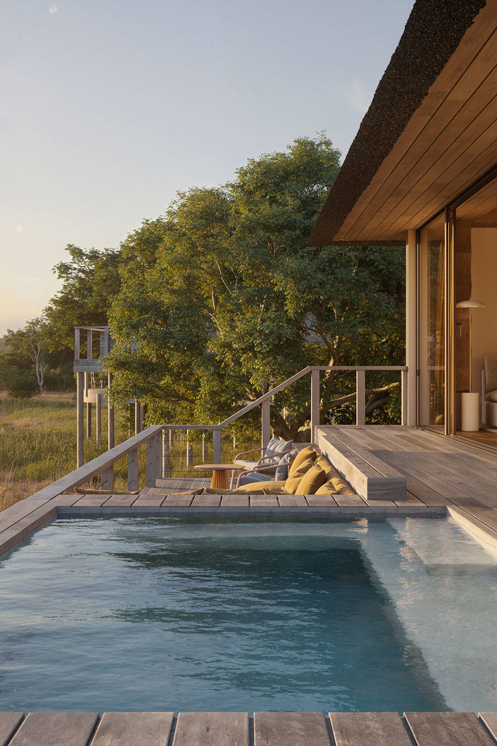 Perched high in the tree-tops along the hippo lake, The Hide Suite offers a secluded retreat where the bush comes alive beneath you. Each suite opens onto private decks with plunge pools and outdoor lounges, blending spacious interiors with the sights and sounds of the wilderness. Thoughtfully designed for privacy and relaxation, the suites allow guests to unwind completely while still feeling intimately connected to the surrounding landscape.