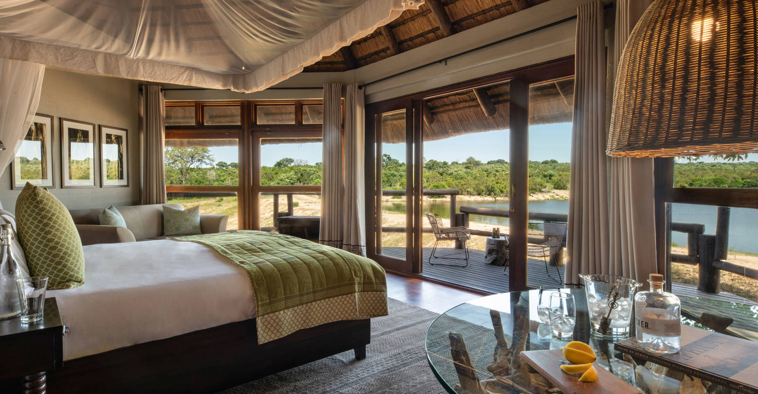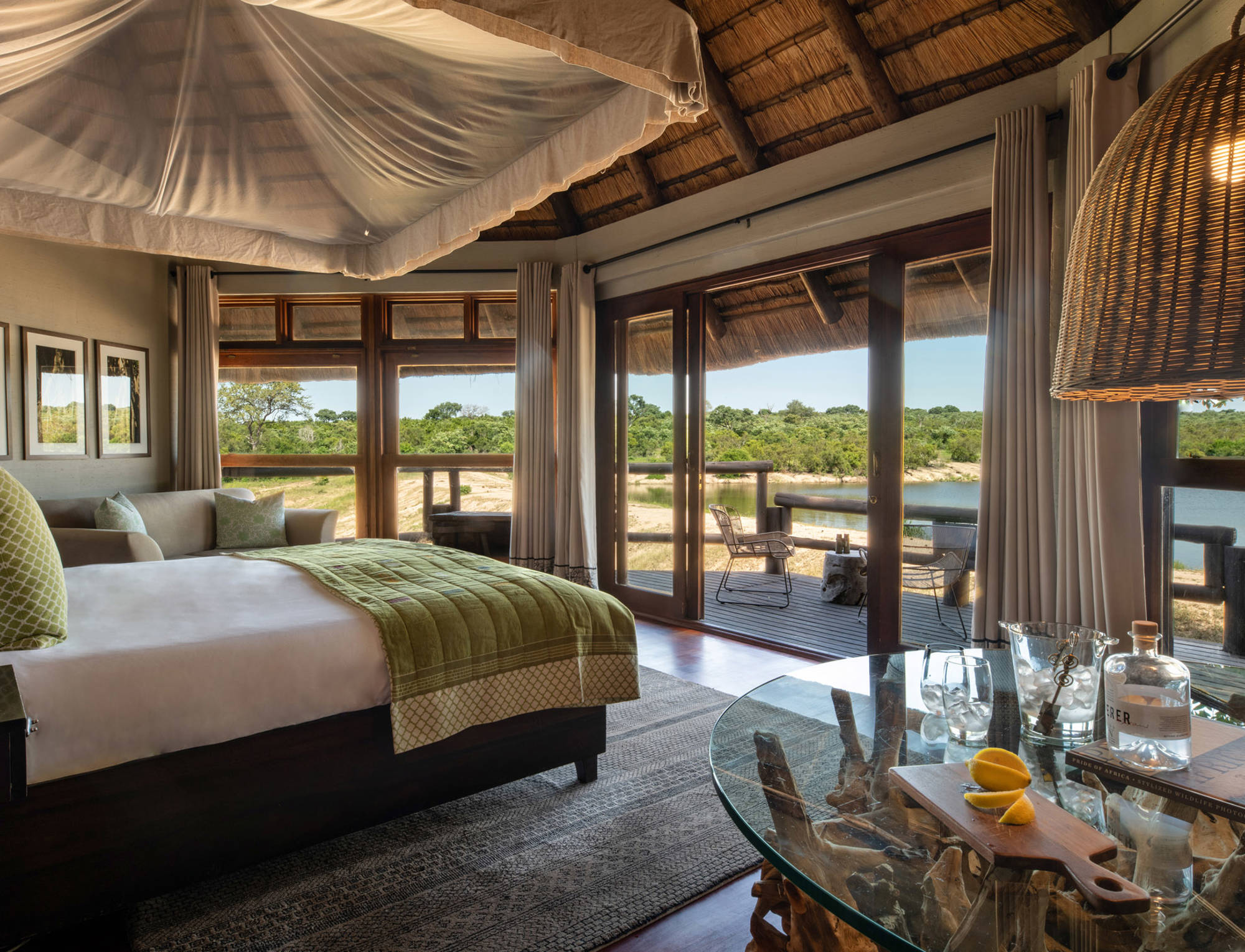 Built in a sophisticated treehouse style, there are four River Rooms at Safari Lodge, two of which have private plunge pools. All are spacious and private, with cosy seating areas and large terraces offering striking views of the riverbed or bush.